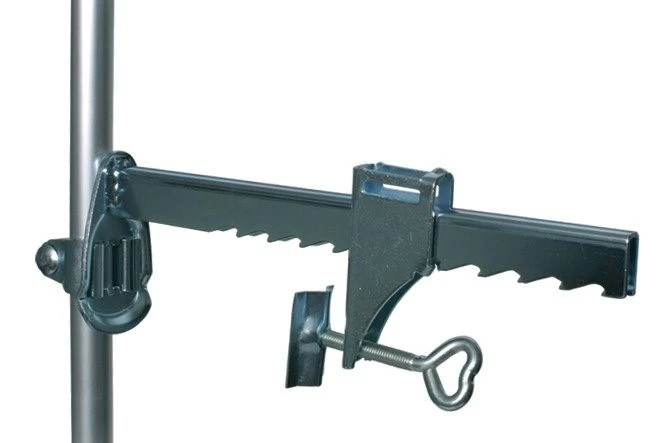 Balkon-Teleskopstange für Katzen-Schutznetz, gewinkelt, schützt vor dem Hinüberspringen der Katze, verstellbar 1 – 2 m, inkl. Mauerklemme verstellbar bis 19.5 cm.