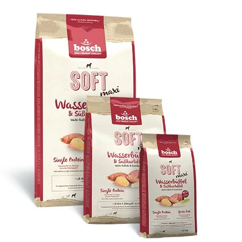 Wenn Sie Ihrem grossen Hund etwas Gutes tun wollen, dann probieren Sie Bosch HPC Soft Maxi – Wasserbüffel & Süsskartoffel. Dieses Futter ist ideal für Hunde, die zu Nahrungsmittelunverträglichkeiten oder Allergien neigen. Es basiert auf einer einzigen tierischen Proteinquelle, dem frischen Wasserbüffel, der Ihrem Hund eine hohe Qualität und einen hervorragenden Geschmack bietet. Ausserdem ist es getreidefrei und daher besonders bekömmlich. Die weiche Krokette sorgt für ein einzigartiges Fressvergnügen, denn Ihr Hund wird das saftige und würzige Fleisch zu schätzen wissen. Weitere wertvolle Zutaten wie Süsskartoffeln, Erbsen, Leinsamen und Chicorée unterstützen die Gesundheit und das Wohlbefinden Ihres Hundes. Das Bosch HPC Soft Maxi Wasserbüffel & Süsskartoffel ist ein Futter, das Ihrem Hund nicht nur gut schmeckt, sondern auch gut tut.
