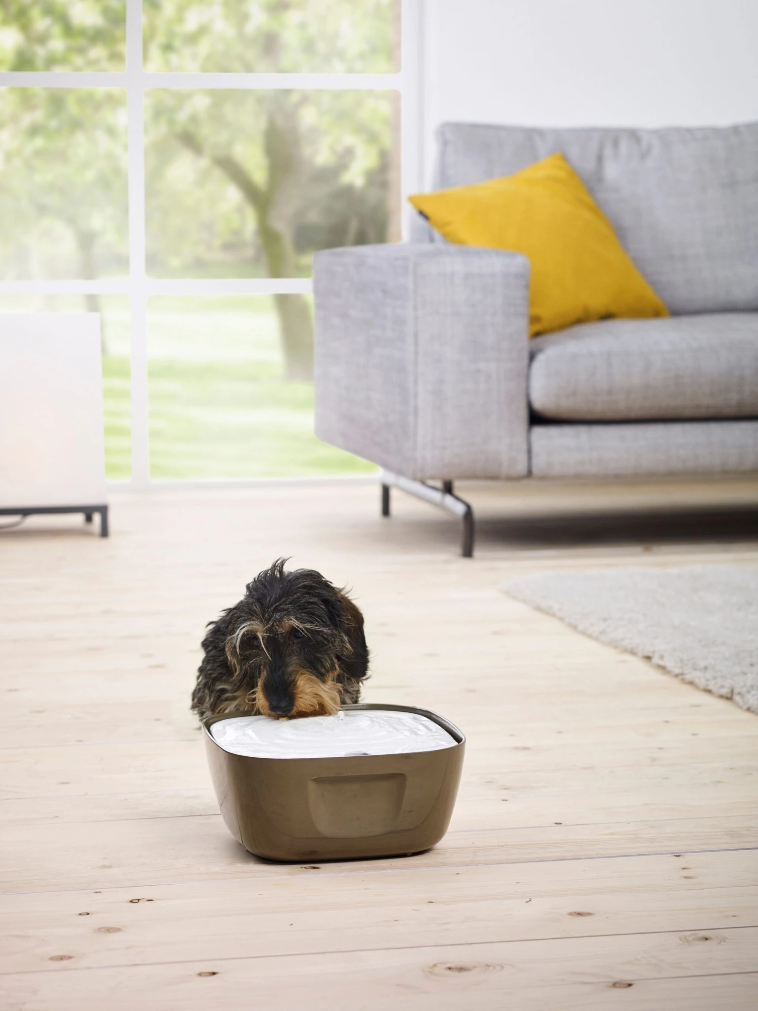 Das sprudelnde Wasser aus dem Trinkbrunnen regt Katzen zum Trinken an und verringert dadurch das Risiko von Nieren- und Blasenproblemen. Durch die ständige Bewegung wird das Wasser mit Sauerstoff angereichert und der Kohlenstofffilter sorgt dafür, dass Schmutz vor dem Hochpumpen des Wassers herausgefiltert wird. Der Brunnen ist leicht zu reinigen und spülmaschinenfest. Ein Must-have für jeden Stubentiger.