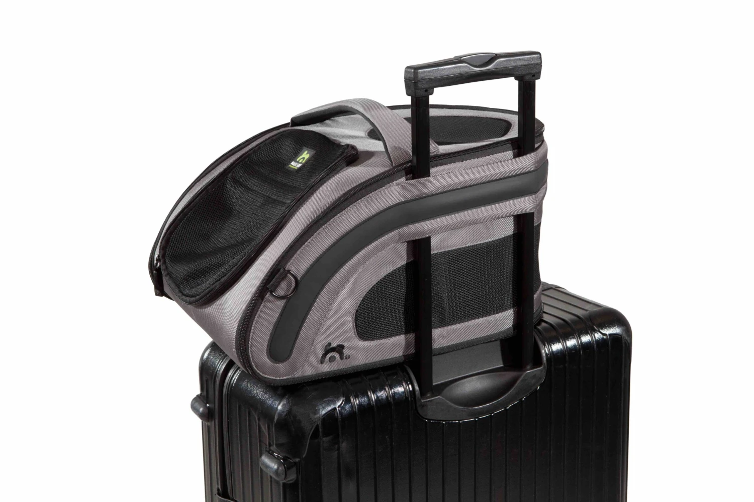 Faltbare und leichte Stofftransportbox. Als Handgepäck in der Fluggastkabine geeignet. Gepolsterter und regulierbarer Schultertragegurt. Strapazierfähiges Meshgewebe an den Seiten und der Oberseite für ausreichende Belüftung. Qualitäts-Reissverschlüsse für bequemen Gebrauch und Langlebigkeit. Seitenhalterungen zur Befestigung an ausziehbaren Koffergriffen oder im Auto mittels des Sicherheitsgurtes. Eingang lässt sich weit öffnen und kann in der Offenstellung dank eingebauter Magnetstreifen fixiert werden. Leinenhalterung im Inneren. Bequeme Plüschmatte mit wasserabweisender Einlage.