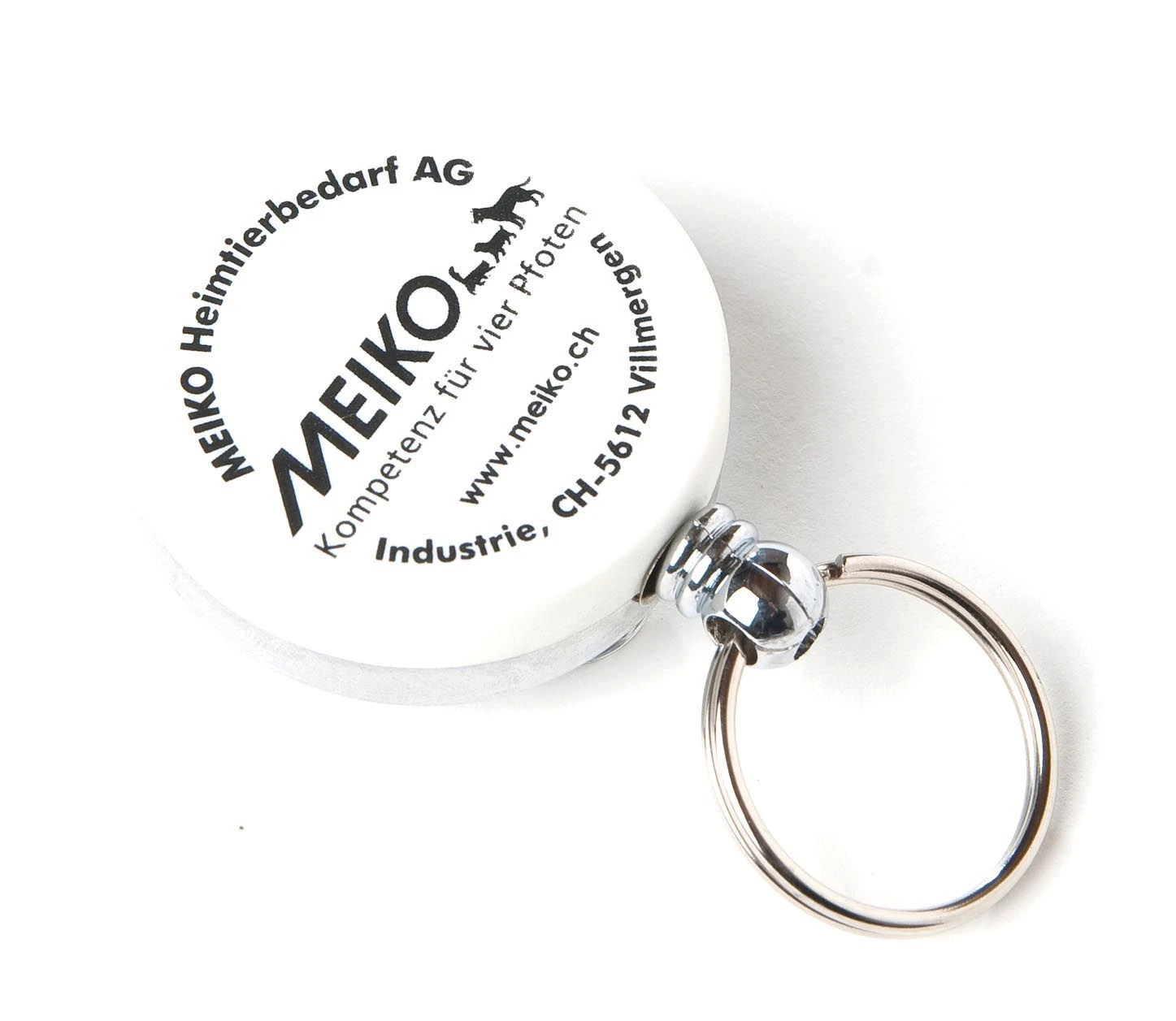 Ausziehbarer Anhänger fürs Clickertraining zum Anbringen an Hosenbund, Gürtel, oder Jackentasche. Aus Metall.