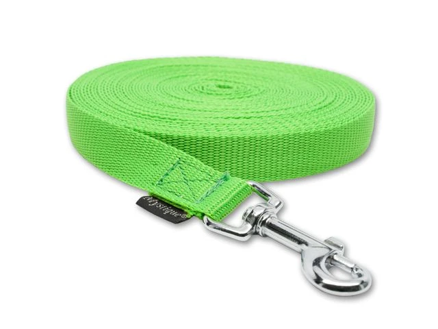 Die Mystique Nylon Schleppleine ist eine hochwertige Wahl für alle Hundebesitzer, die Wert auf eine leichte und gleichzeitig robuste Leine legen. Die aus wasserabweisendem Nylon-Gurtband gefertigte Leine ist speziell für den Einsatz im Hundesport sowie für Hobby- und Freizeitaktivitäten mit Ihrem Vierbeiner konzipiert. Durch den integrierten Karabinerhaken lässt sie sich einfach am Halsband oder Geschirr befestigen. Das Besondere an dieser Leine ist, dass sie auf dem Wasser schwimmt und sich somit ideal für Sicherheits- und Arbeitsübungen im Wasser eignet. Ob beim Spaziergang in der Natur, beim Training auf dem Hundeplatz oder bei Aktivitäten im und am Wasser – mit der Mystique Schleppleine können Sie Ihren Hund immer sicher und bequem führen.