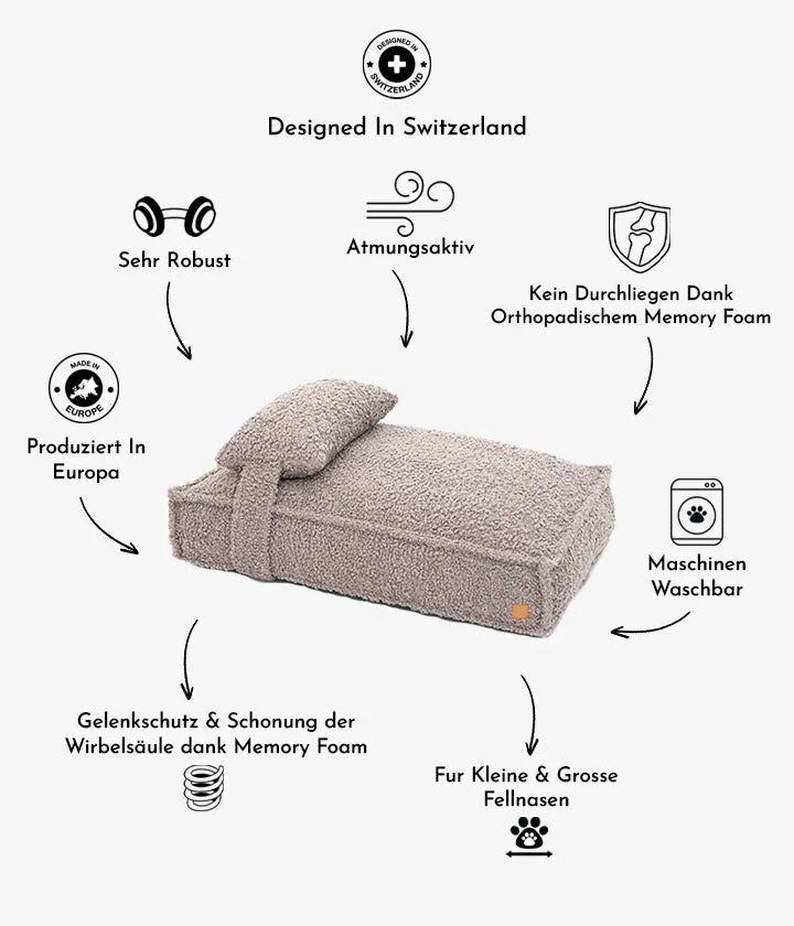 Entdecken Sie die Cordi Boucle Hundematte mit Kissen von PET & Co. Diese weiche und dennoch robuste Matte, zusammen mit dem erstklassigen Kissen, besteht zu 100 % aus orthopädischen Visco-Flocken, die die Gelenke Ihres Hundes schonen und ein Durchliegen verhindern. Die Bezüge sind aus umweltfreundlichem Textil gefertigt und können in der Maschine gewaschen werden. Gönnen Sie Ihrem pelzigen Freund den Komfort, den er verdient – stilvoll, langlebig und leicht zu pflegen!