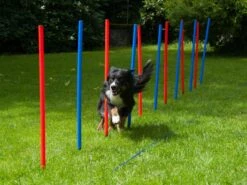 Hochwertiges, sehr stabiles Slalom Set von Procyon Hundebedarf. Lieferumfang: 12 Slalomstangen (86cm Höhe) mit verzinkten Erdnägeln, Richtschnur inkl. Heringen, Tragetasche, Aufbau- und Spielanleitung. Gemeinsam mit Ihrem Hund werden Sie viel Spass haben und dabei fit bleiben.