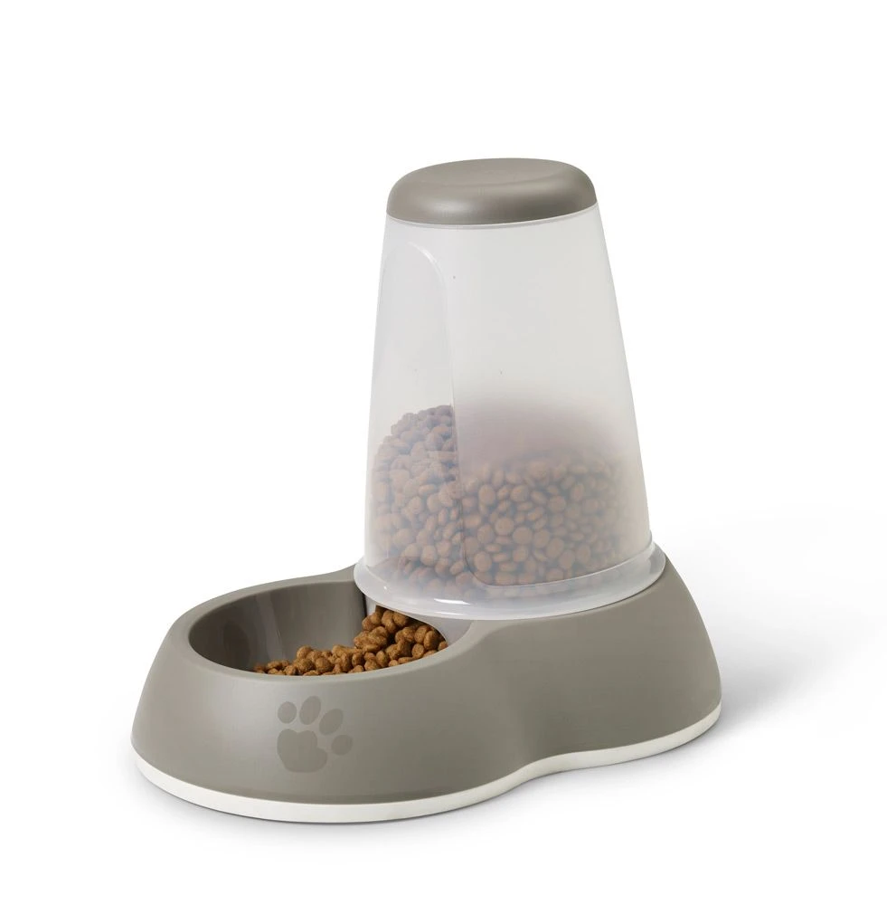 Moderner Premium Futterspender aus Kunststoff. Der Futterspender hat ein Fassungsvermögen von 3 L und kann mit Trockenfutter befüllt werden. Dank dem transparenten Behälter kann man jederzeit problemlos den Futterstand überprüfen. Dank dem integrierten Anti-Rutsch-Gummi am Boden des Spender ist er stabil und standfest. Zudem ist das Material leicht zu reinigen.